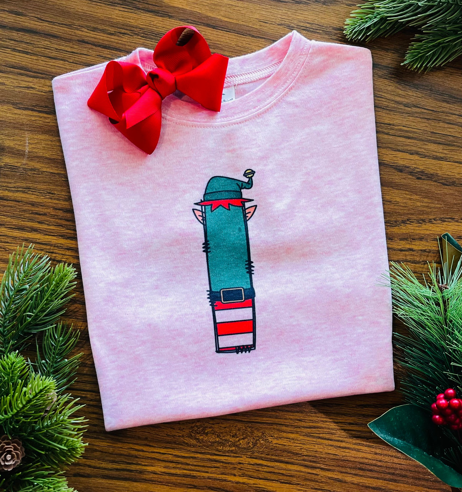 Christmas Elf Initial on Pink
