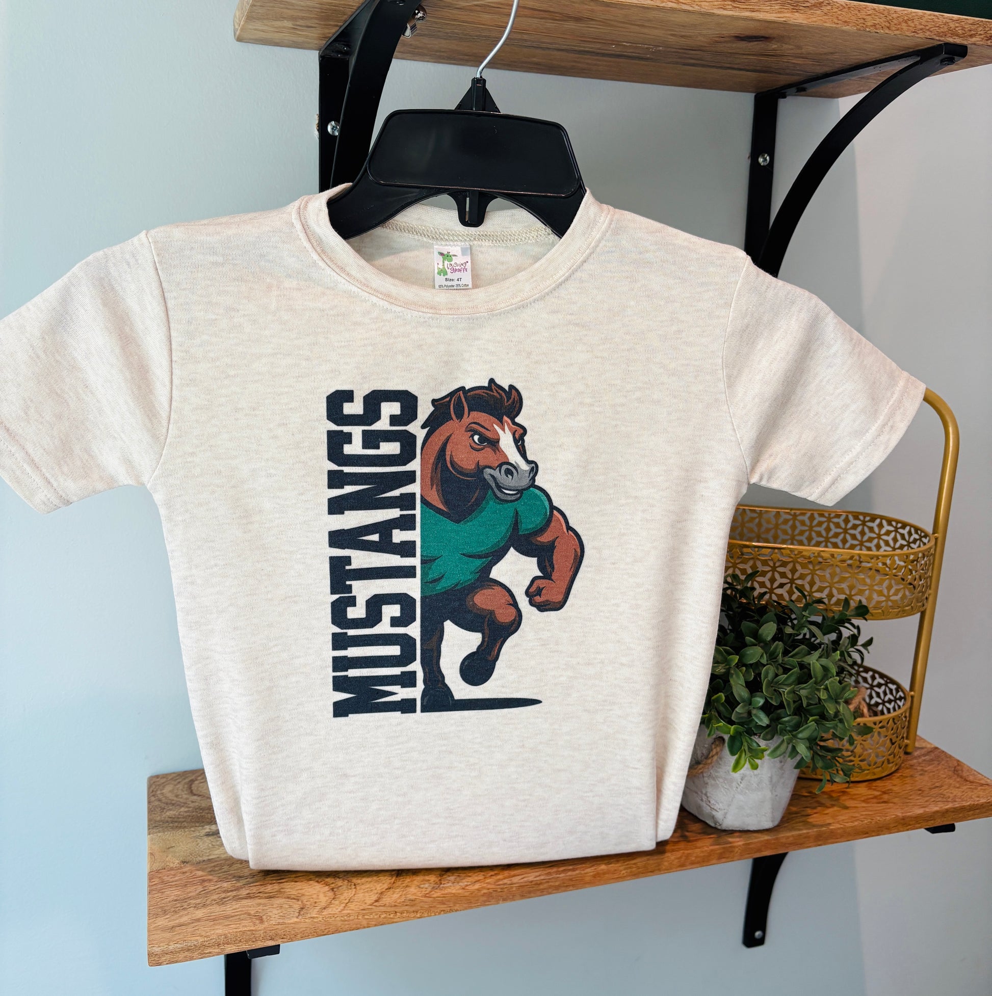 Mustangs in Green on Oatmeal