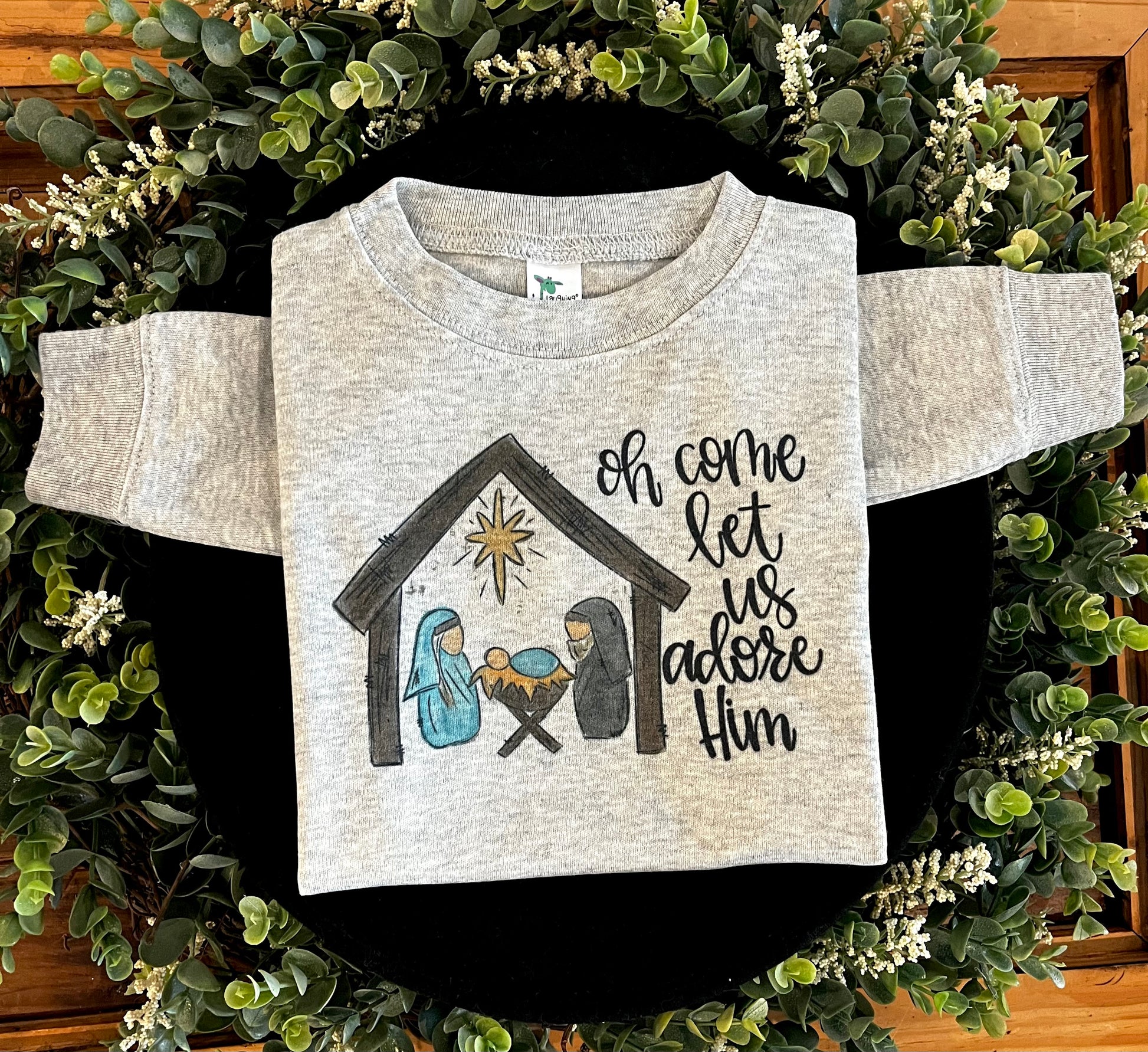 Oh Come Let us Adore Him Nativity on Grey